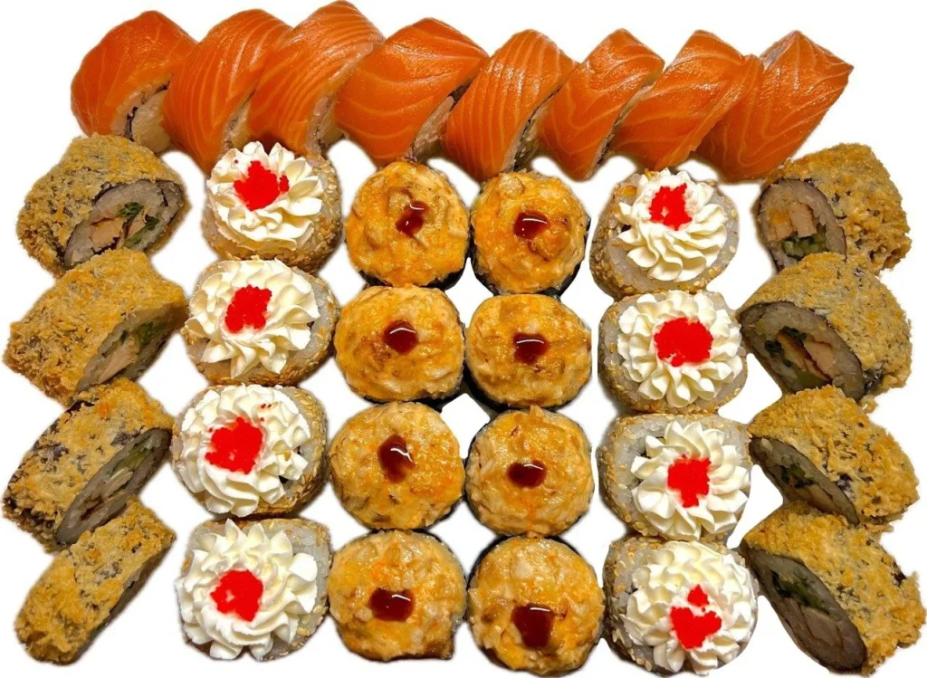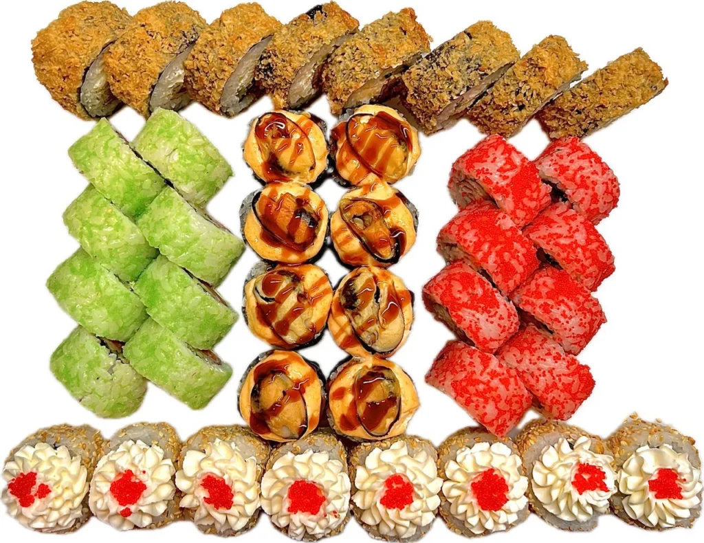 Fúze, Green roll, Tempura s kuřecím masem, Tempura s japonskou omeletou, Pečená kuře, Zapečené s mušlemi, Aljaška v sezame, Philadelphia Green, Philadelphia Classik, Kalifornia v kavíar